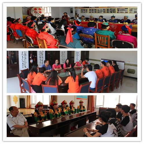实践团赴阿右旗文工团、安代舞协会、团结社区以及满达社区,与民间艺术家和蒙古长调爱好者进行主题座谈。深度访谈了国家级非物质文化遗产传承人淖尔吉玛,话题涉及蒙古长调发展、变革、传承与创新等。文工团的专业演员们为实践团带来了包括蒙古长调、呼麦、马头琴、陶布秀尔等精彩表演,又带来了蒙古剧《巴丹吉林传说》。实践团成员分别与文工团领导及一线演员、安代舞协会负责人等就演出市场、院团改制等进行了座谈。