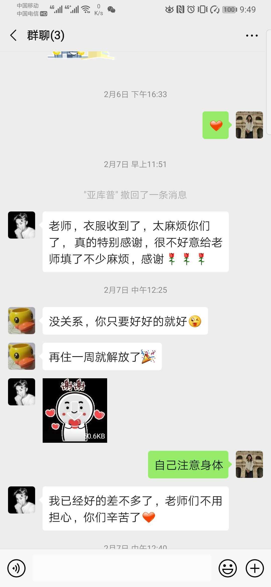 对理学院新疆学生亚库普•阿西木来说,辅导员老师的陪伴和关爱,就像冬日里的暖阳。按照学校疫情防控相关要求,2月4日,亚库普•阿西木被安排到东大招待所进行隔离,期间他出现了发烧症状。辅导员卢文芸第一时间联系120将他送至医院进行详细检查。在确认排除新冠肺炎后,看到自己身着衣物有些单薄,老师们又主动购买保暖内衣,并送上500元“遵理互助基金”,这些都让亚库普•阿西木体会到了“雪中送炭”般的温暖。
