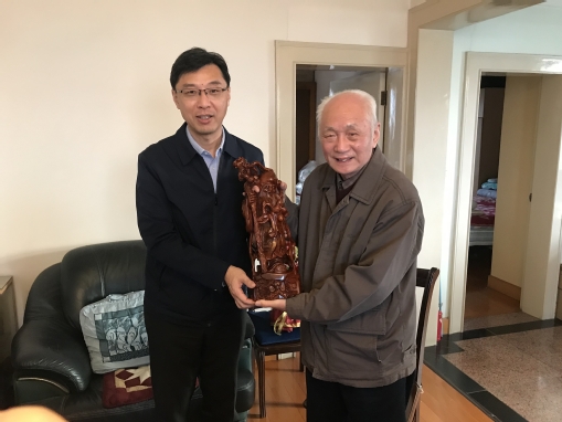10月28日,校党委书记刘承功专程登门看望原校党委书记丁证青同志,代表学校向他祝贺90岁寿辰。校党委副书记崔运花以及党办、老干办等相关职能部门负责同志陪同慰问。
