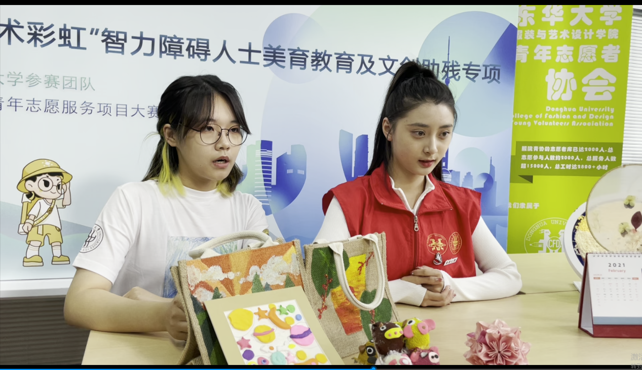 2009年,我校与上海市长宁区残疾人联合会共同发起天山路、新华路、北新泾“阳光之家”手工课堂。2019年,在上海市慈善基金会的牵线下,我校与长宁区特殊职业技术学校、辅读学校、长宁区残联智力障碍及家属联合会成为合作伙伴,专注于开发针对智力障碍儿童的美育课程和文创产品,打通了长宁区智力障碍人士小学教育、中学教育、社会教育的三个成长阶段,形成了阶梯化、可持续、链条式的闭环式美育教育成长服务链。