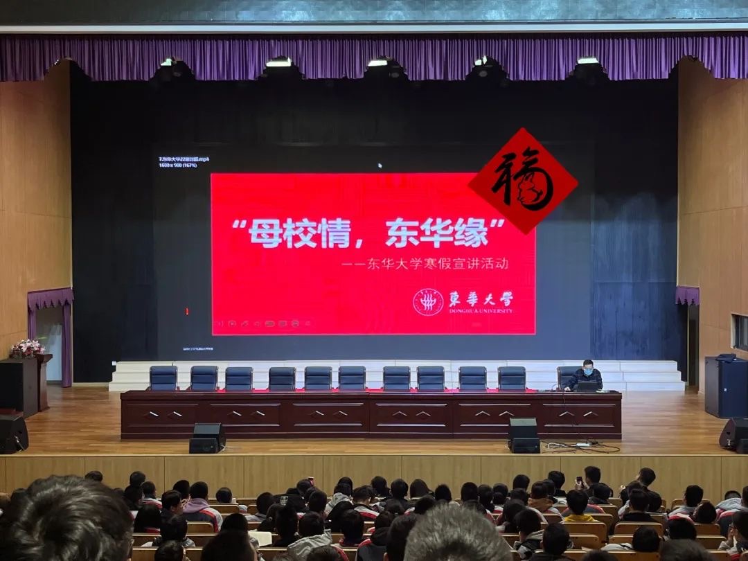 旧地重游,脑海中骤然浮现的是奋笔疾书的日日夜夜,“校园大使”用自己的成长故事,搭建起东华与生源地高中的纽带。陈颖、谢彦梓和章雨轩前往浙江省瑞安市上海新纪元高级中学,介绍了我校办学特色、培养模式,分享了自己的大学生活、高考填报志愿心得体会等。江苏省赣榆高级中学小分队则以视频形式介绍东华概况,并声情并茂地与学弟学妹分享充实多彩的大学学习生活经历。线上宣讲也如火如荼,河南省虞城县高级中学小分队通过“云宣讲”,绘声绘色地讲解了东华的优势与竞争力。“校园大使”耐心解答学弟学妹的疑惑,缓解他们的学习压力,为他们鼓劲加油。