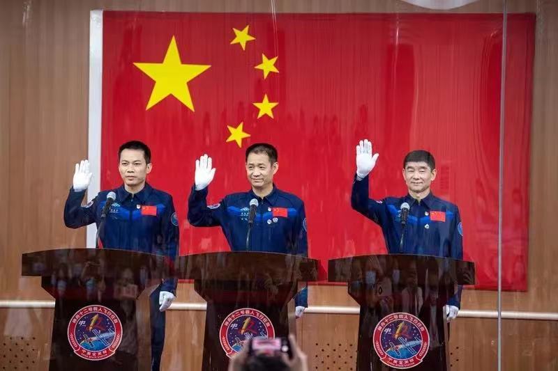 (张渭源教授与航天员景海鹏、翟志刚、刘伯明)