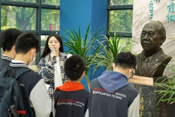 浇花要浇根,育人要育心。为了引导附校学子扣好人生“第一粒扣子”,自从“行走的大思政课”项目筹备召集令一发出,各学院、中心的教授、老师纷纷主动带头报名,既有已退休的教授,也有教科研骨干教师,还有刚入校不久的青年教师,老中青三代人因为“大中小思政一体化育人”这个目标而汇聚在一起。他们在各自学院的不同专业领域,为附校学生量身设计适合中学生的科普思政课方案。为了让大学课程更贴近中学生,附校也组织了一批具有项目化、跨学科教学经验的道德与法治、化学、物理、艺术、自然、科学、历史等学科背景的优秀中小学教师,分别与相关学院的点位课程进行提前踩点和方案磨合,以大小东华教师共同备课的形式,不断优化研学课程,弘扬科学家精神,筑牢信仰之基。