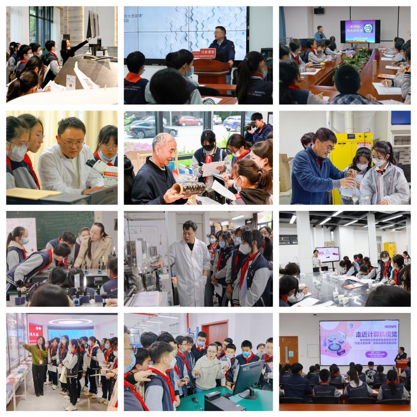 与此同时,纺织学院、材料科学与工程学院、信息科学与技术学院、环境科学与工程学院、机械工程学院、计算机科学与技术学院、理学院、化学与化工学院、生物与医学工程学院、民用航空复合材料协同创新中心、校史馆、科技馆等16个点位的“科普+思政”“校史+思政”的专场课堂同步开讲,每个点位轮流接待4批学子,这也意味着东华附校前来参加活动的400余名初中生每人都有机会体验四场不同领域的科普思政课。